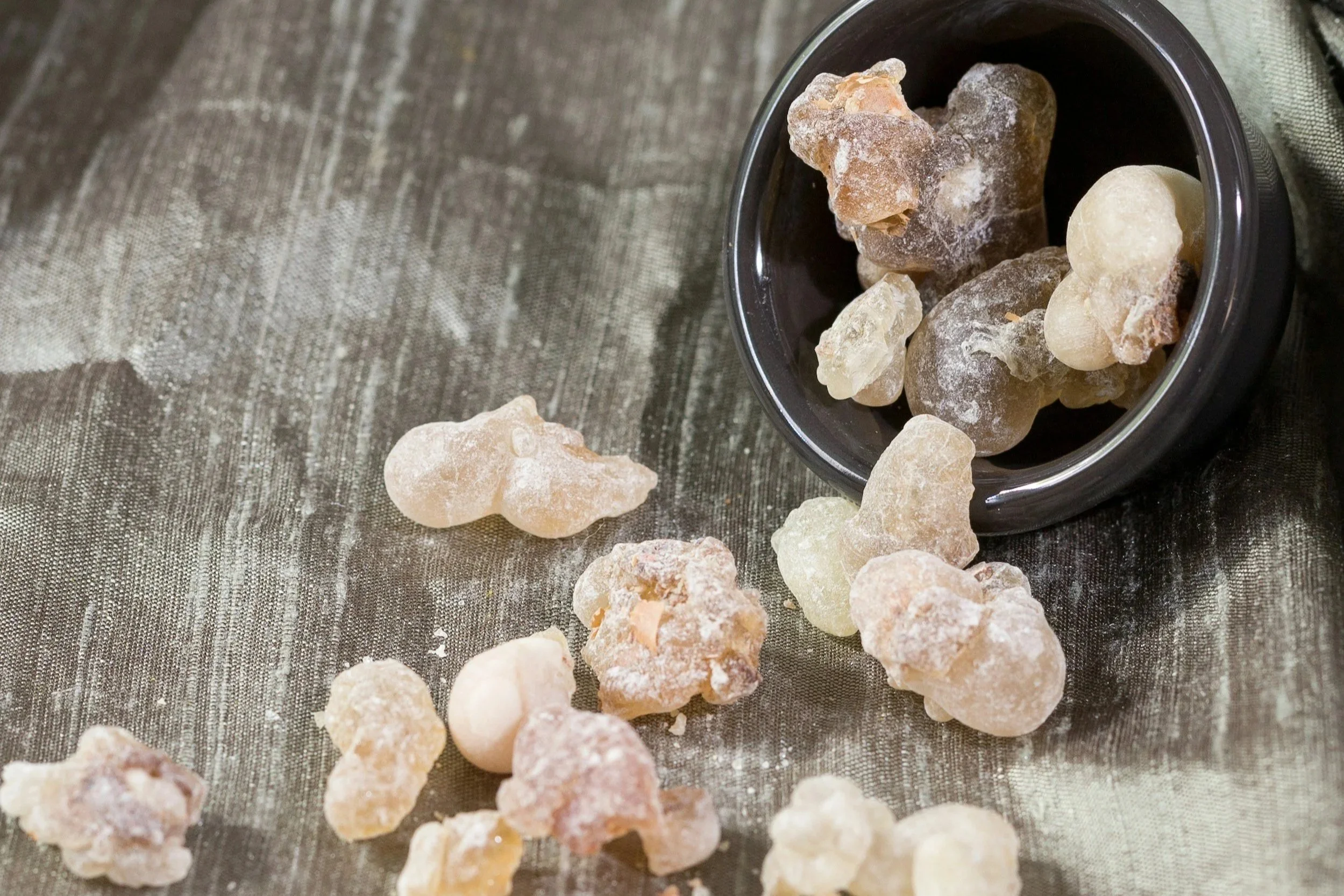 Distilled from the aromatic resin of Boswellia carterii, frankincense carries boswellic acids, monoterpenes, and sesquiterpenes that calm inflammation, support elasticity, and encourage repair. Long regarded as sacred, it visibly softens lines and restores vitality to tired skin. Energetically, frankincense is expansive and centering, opening space for stillness and renewal while grounding the spirit.